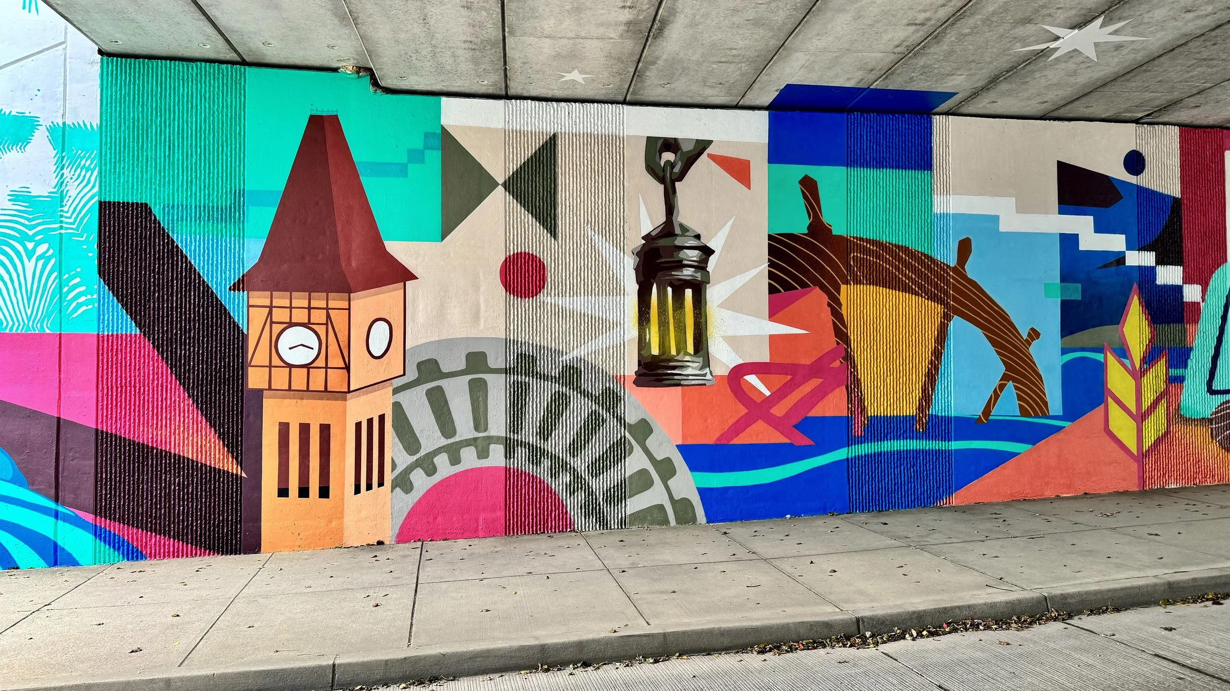 What an awesome project to complete. With the partnership of Meet NKY, OSRS was able to commemorate some of the awesome people, things and places that make Covington, Kentucky a unique and beautiful location. Situated in a viaduct under the Roebling Bridge that spans the Ohio River, this mural serves to enshrine the history of this wonderful city in a historic area.